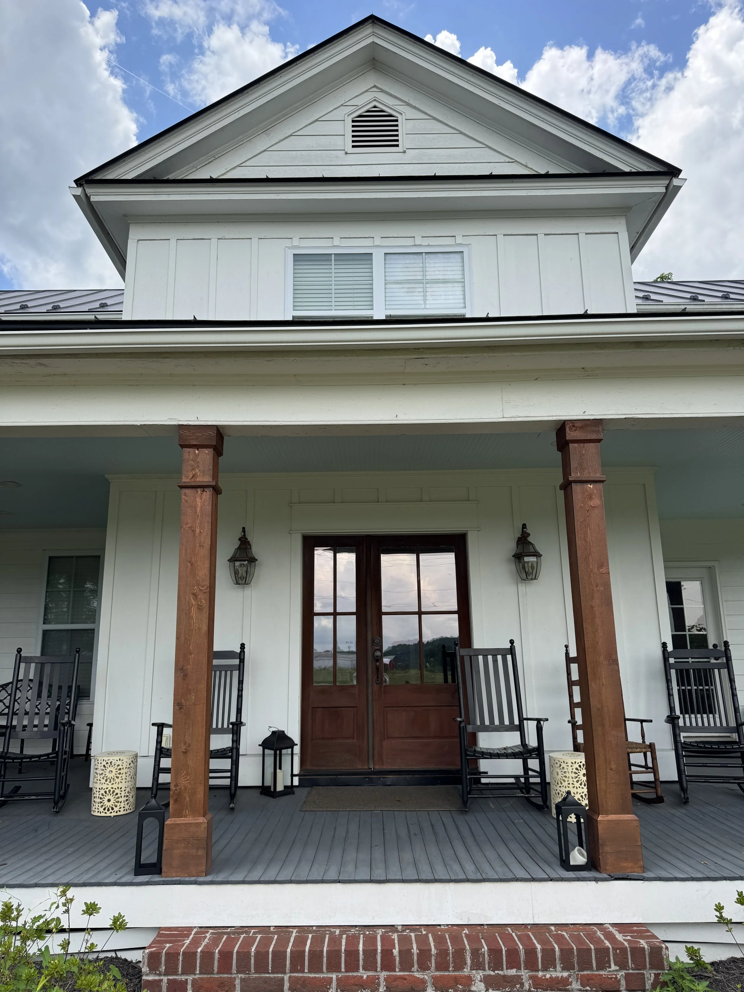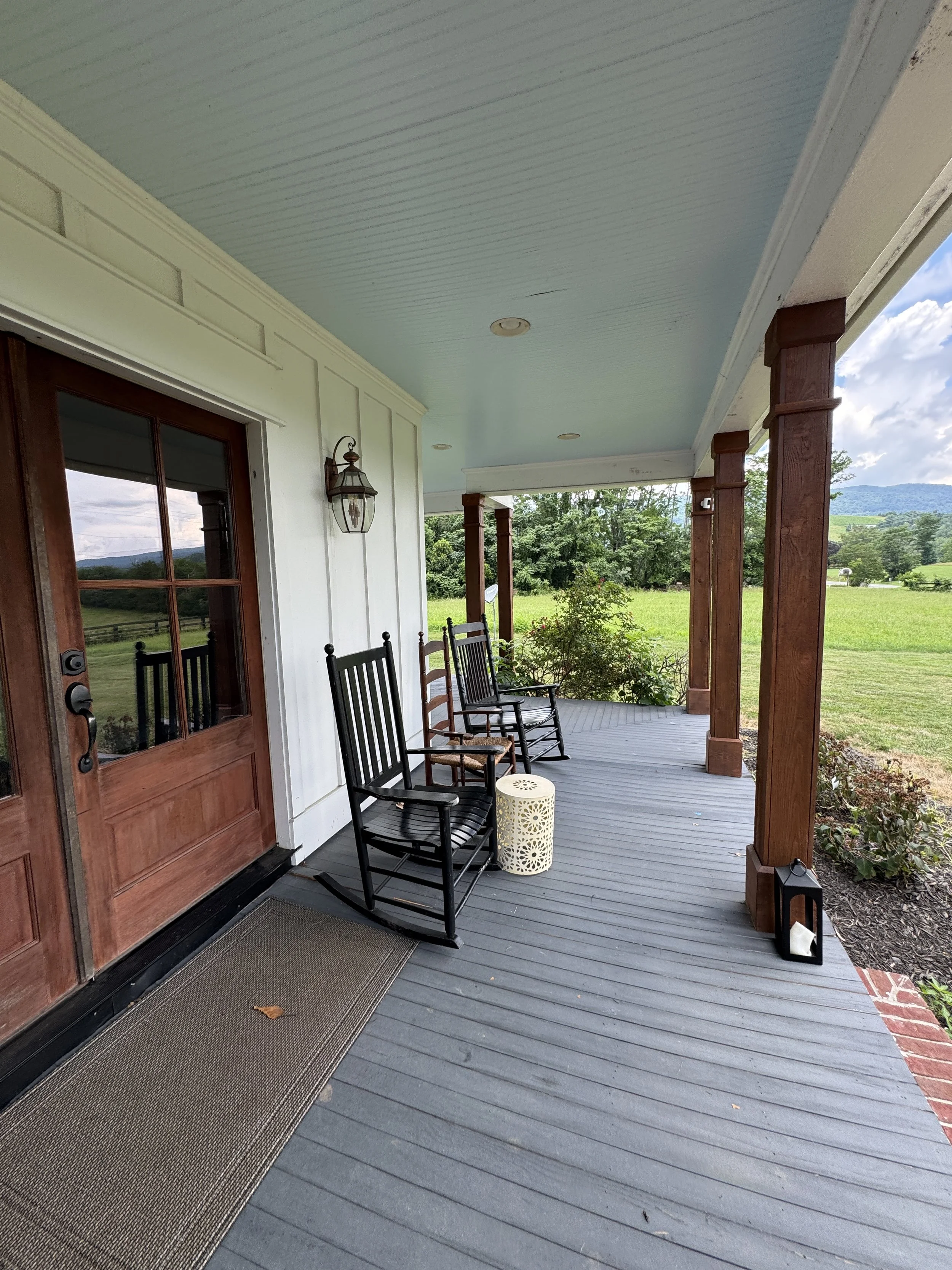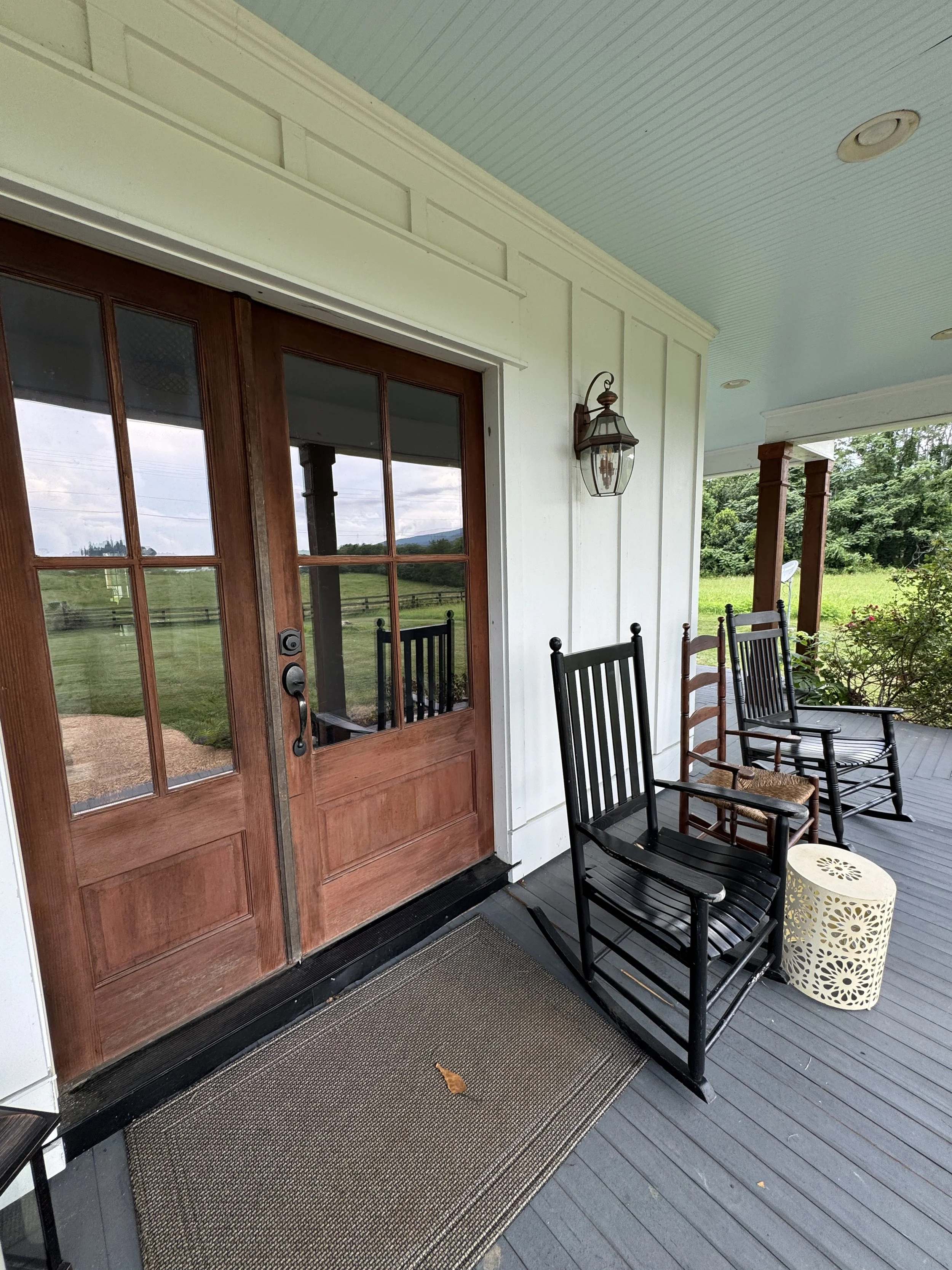 From the moment you arrive, you’re enveloped in a sense of calm. Clean, bright interiors make the home feel both refined and welcoming, while wide front porches with rocking chairs and rolling mountain views invite you to slow down and stay awhile. Whether you're gathering around the indoor dining table for a cozy meal or sipping wine on the lawn as the sun sets over the vines, every space is designed with comfort and connection in mind.