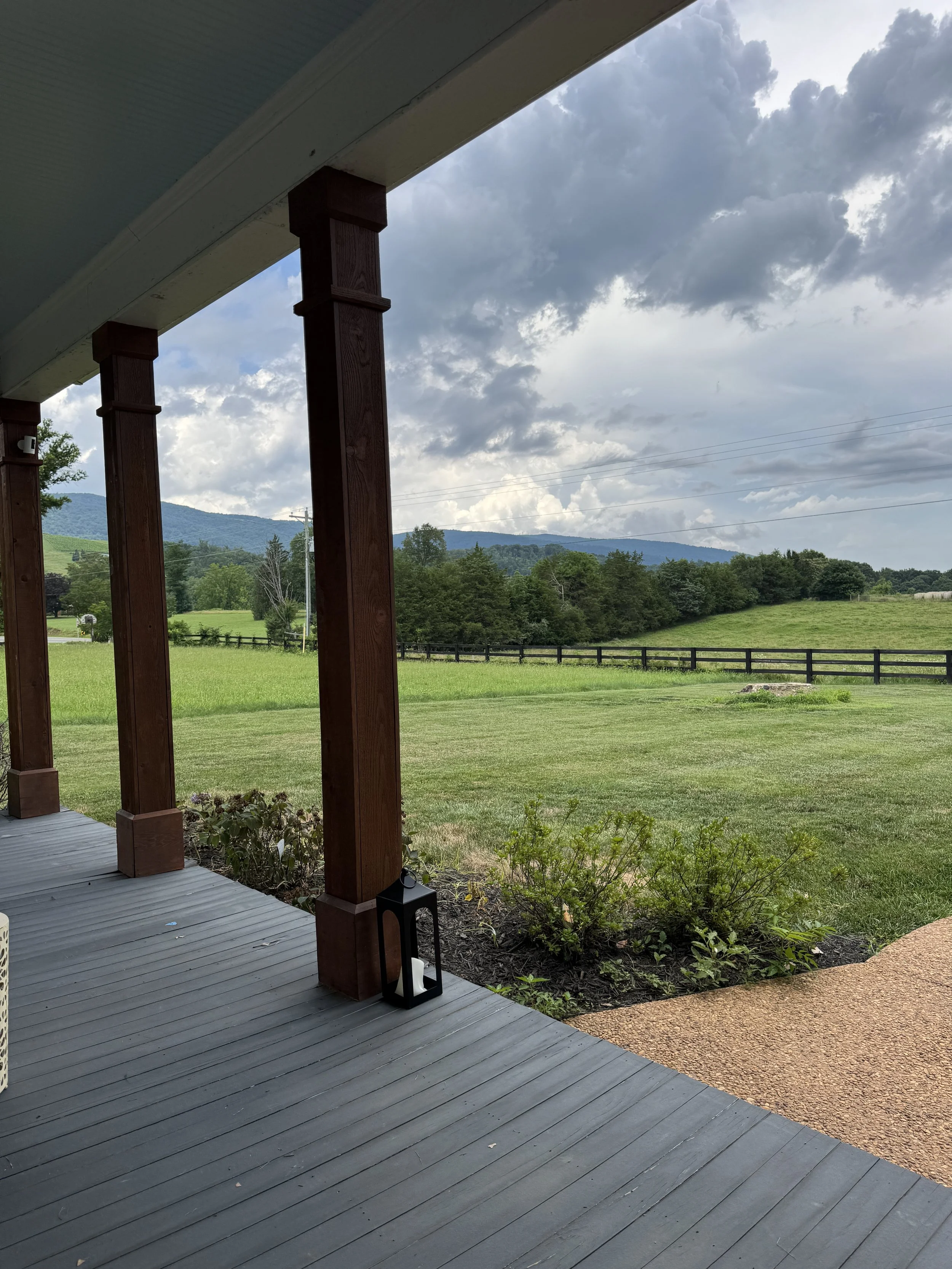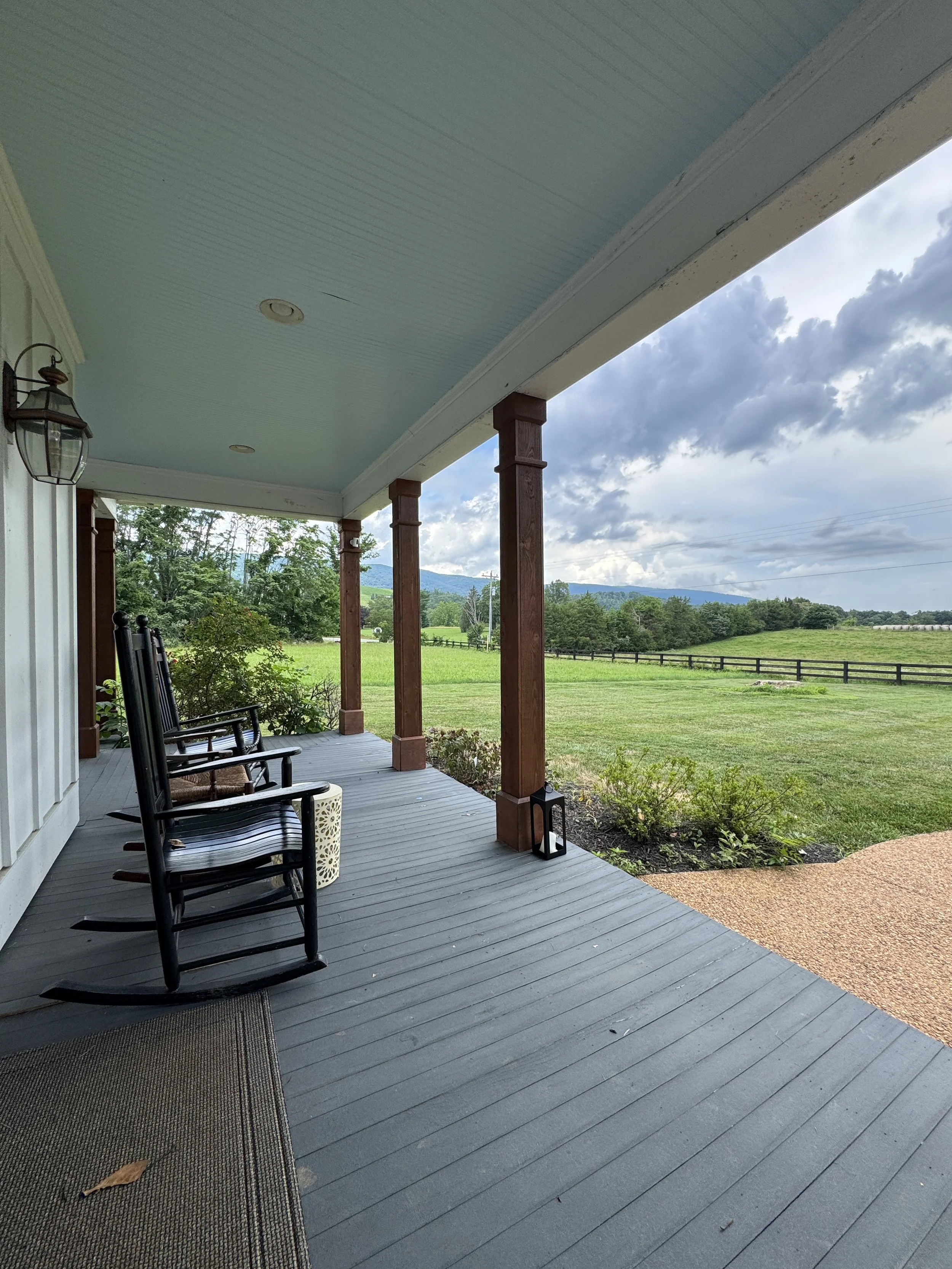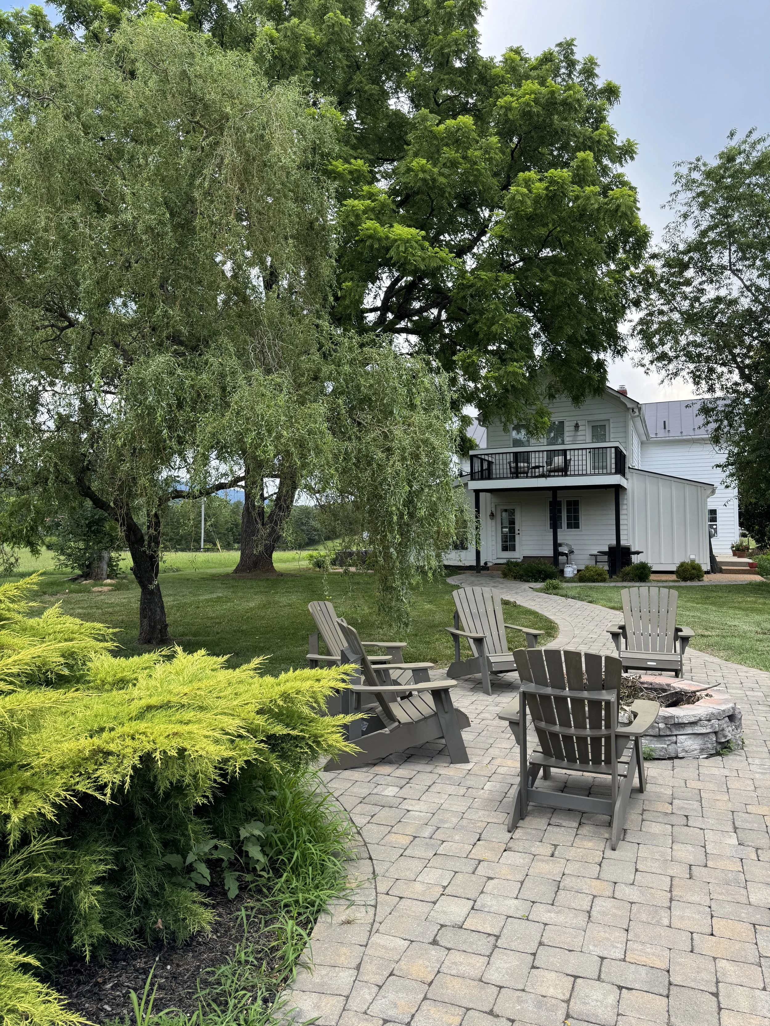 From the moment you arrive, you’re enveloped in a sense of calm. Clean, bright interiors make the home feel both refined and welcoming, while wide front porches with rocking chairs and rolling mountain views invite you to slow down and stay awhile. Whether you're gathering around the indoor dining table for a cozy meal or sipping wine on the lawn as the sun sets over the vines, every space is designed with comfort and connection in mind.